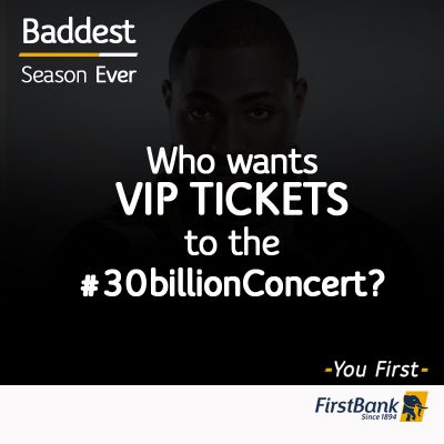 It is the ‘Baddest’ and Biggest Concert this year! FirstBank – Nigeria’s Premier Bank and Davido- Nigeria’s ‘Baddest’ artiste are partnering to ensure you have the best time at the #FirstBank30Billion Concert. The build-up and anticipation has kept the social media space buzzing for days and FirstBank is giving away FREE tickets on their social media pages!