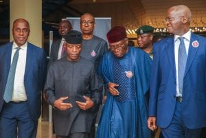 Vice President Yemi Osinbajo, SAN, attends Act Now town hall meeting alongside Min. of Industry, Trade and Investment, Dr. Okechukwu Enelamah.; Min. of Transportation, Mr. Rotimi Amaechi; Min. of Power, Works and Housing, Mr. Babatunde Raji Fashola;; Min. of Agriculture, Chief Audu Ogbe; held in Abuja. 12th November, 2018. Photos: NOVO ISIORO