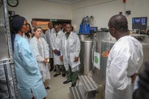 U.S. Deputy Assistant Secretary for West Africa and Security Affairs, Bureau of African Affairs, Whitney Baird and Mrs. Olu Mustapha, representing the Permanent Secretary for Defence, visited the Defense Reference Laboratory (DRL) of the Nigerian Ministry of Defense (NMOD) in Mogadishu Cantonment to view firsthand the strong partnership between the Nigerian and U.S. militaries to strengthen public health. DRL represents an excellent example of military to military collaboration aimed at addressing deadly infectious diseases affecting Nigeria and the West African region.