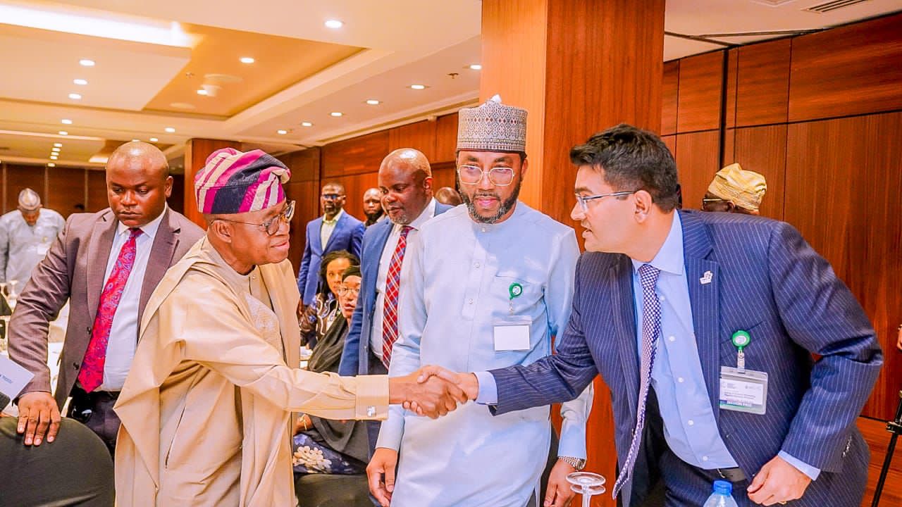 The Day in Pictures: Advocating Marine & Blue Economy Managing Director Nigerian Ports Authority Mohammed Bello Koko (Middle) brokers a handshake between the Honorable Minister for Marine and Blue Economy Adegboyega Oyetola and Mr Dinesh Rathi CEO Lekki Free Trade Zone at the NESG