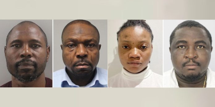 The group, consisting of Abraham Alade Olarotimi Onifade, 41, Abayomi Aderinsoye Shodipo, 38, Nosimot Mojisola Gbadamosi, 31, and Adekunle Kabir, 54, made fraudulent applications for Nigerian citizens between March 2019 and May last year.