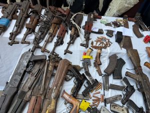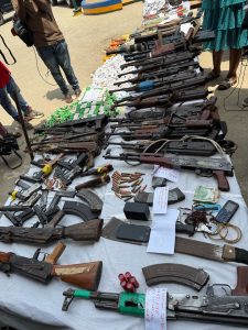 “The recovered items also included a large quantity of ammunition and weapons, comprising 116 rounds of 7.62mm live ammunition, 102 rounds of 9mm live ammunition, locally made pistols, shotguns, axes, cutlasses, and daggers.