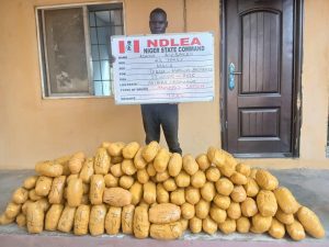 “In Niger State, NDLEA operatives stopped a Mercedes Benz car marked FST 938 FU along Mokwa-Jebba road on May 22, seizing 235 blocks of compressed cannabis weighing 97kg and arresting the driver, Adams Ayibakro.