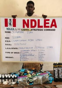 “In Lagos, operatives raided Osapa London, Lekki, arresting Jonathan Isa with various quantities of cocaine, methamphetamine, molly, rohypnol, codeine, cannabis, and nitrous oxide. A separate raid at Idasun, Eleko, Ibeju-Lekki, on May 24, resulted in the arrest of Olamilekan Idowu and the seizure of 48kg of skunk.”