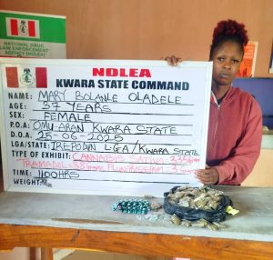 “In a separate operation in Kwara state, NDLEA operatives raided the base of notorious drug dealer Mary Bolanle Oladele, alias Iya Nafi, on Wednesday, June 25, in Omu-Aran, Irepodun Local Government Area, recovering various quantities of skunk, tramadol, and flunitrazepam.