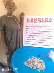 “On Tuesday, June 24, NDLEA operatives arrested 72-year-old Mrs Christy Ejaro at the Niger CAT area of Warri, Delta state. Several sachets of skunk, packaged for retail, were recovered from her.”