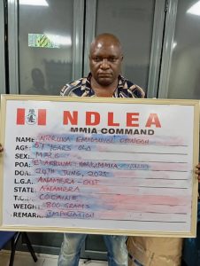 “In a separate operation, NDLEA operatives on June 27 arrested another Europe-based businessman, Amen Okoro Godstime, at Lagos airport while he attempted to traffic 5,000 pills of tramadol 225mg, disguised as malaria medications such as Lonart, Amatem, and Aluktem, to Spain.