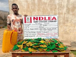 “In Adamawa, NDLEA operatives acting on credible intelligence on Friday, August 22, raided the home of a notorious drug dealer Idris Garba who scaled the fence to escape arrest while one of his associates Boniface Nnaji, 55, who attempted same was caught in the act at Rumde Baru area of Yola South.