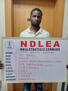 “The cargo agent arrested in connection with the 1.00kg cocaine also identified Smith David Korede as the consignor, bringing to three the number of seized cocaine consignments linked to the suspect.