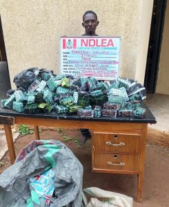 “A joint operation between NDLEA officers and Customs Service personnel at a check point along Danbatta-Daura road, Kano, on Thursday, October 2, led to the arrest of 38-year-old Sa’adu Ali and seizure of 290, 450 pills of tramadol 250mg and pregabalin capsules.”