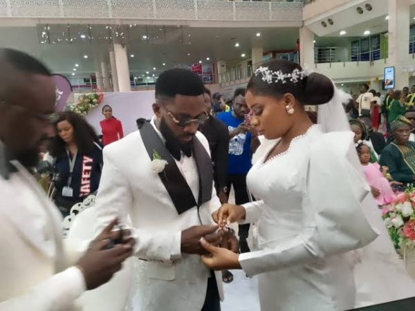 A rare spectacle took place on Saturday in Lagos as airport users watched a couple take their wedding vows at the Murtala Muhammed...